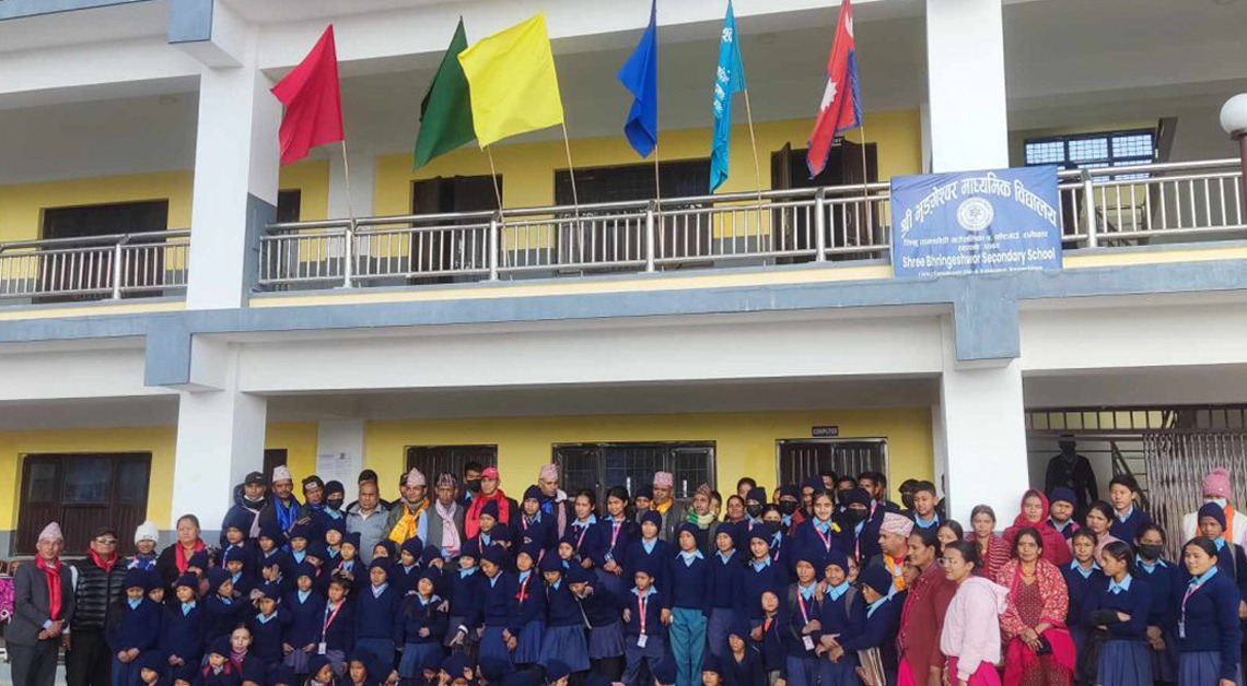 रामेछाप । लिखु तामाकोशी गाउँपालिका–४ मा रहेको श्री भृङ्गेश्वर मावि कोटगाँउका शिक्षकहरुले चन्दा संकलन गरेर न्यानो कपडा खरिद गरी विद्यालयमा अध्ययनरत बालबालिकाहरुलाई बितरण गरेका छन्